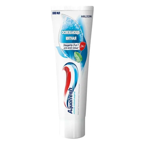 Зубная паста Aquafresh также обладает освежающим мятным вкусом и подходит для ежедневного использования.