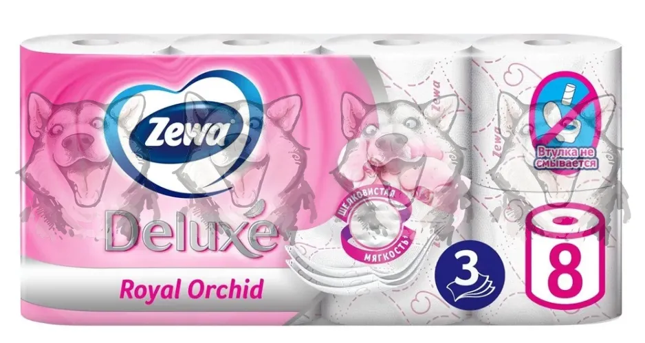 - Туалетная бумага Zewa Deluxe 3-х слойная Орхидея 8 рулонов