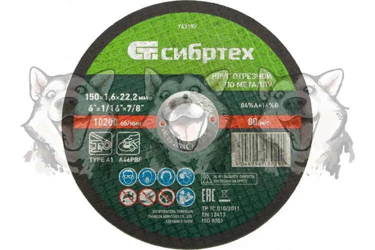 Круг отрезной по металлу 150х1,6х22,2мм 84%A+16%B Сибртех