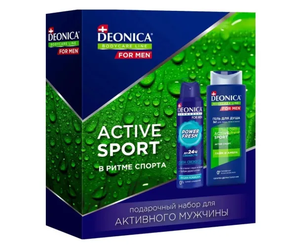 - Подарочный набор Deonica For Men Active Sport Антиперспирант спрей 150 мл и гель для душа 3в1 250 мл