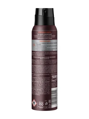Смелее к приключениям! Почувствуй заряд свежести и авантюрный дух приключений с этим освежающим ароматом с древесными нотами гуараны. Аэрозоль антиперспирант. До 72 часов защиты от пота и влажных подмышек без спирта. Эффективно борется с бактериями, вызывающими неприятный запах пота. Дерматологически протестирован, бережная к коже формула, с технологией против пятен. Веган формула: не содержит ингредиентов животного происхождения.