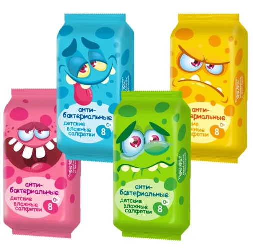 - Салфетки влажные Эконом Smart Детские антибактериальные в ассортименте 8 шт