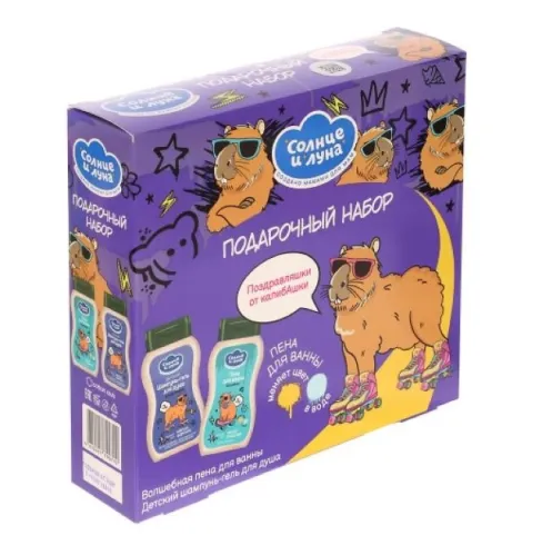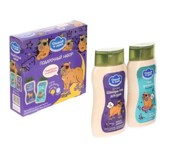 - Подарочный набор Солнце и Луна Капибара для мальчиков 3+ Шампунь 2в1 200мл и пена для ванн Волшебная 200мл