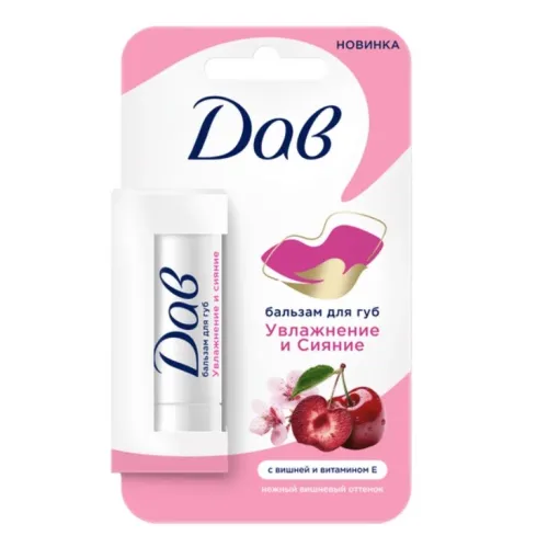 - Бальзам для губ Дав Увлажнение и сияние с вишней и витамином Е с оттенком 4 гр
