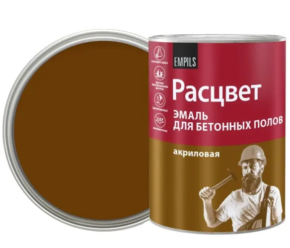 - Эмаль Расцвет акриловая для бетонных полов коричневая 0.9 кг