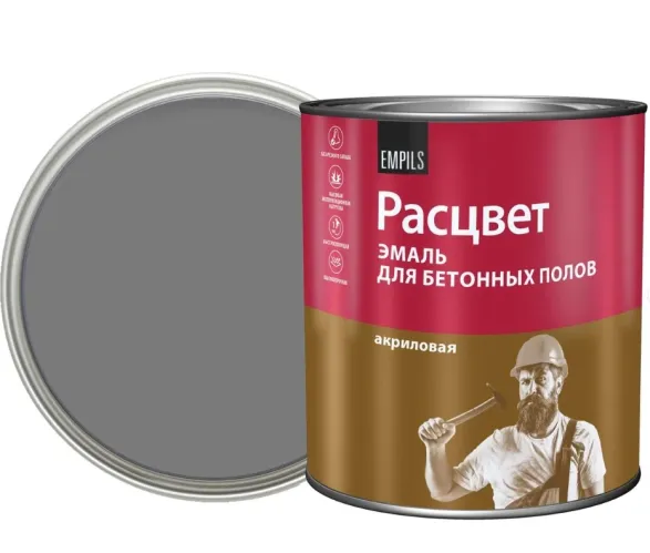 - Эмаль Расцвет акриловая для бетонных полов серая 2.7 кг