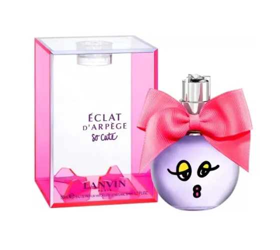 Парфюм одет в очаровательный флакон с глазками и пухлыми губками. Нежная, цветочно — фруктовая композиция парфюма Lanvin Eclat D'arpege So Cute начинается с аромата сицилийского лимона и сирени. Сердце состоит из листьев зеленого чая и цветов персика, возложенных на основе ливанского кедра и белого мускуса.