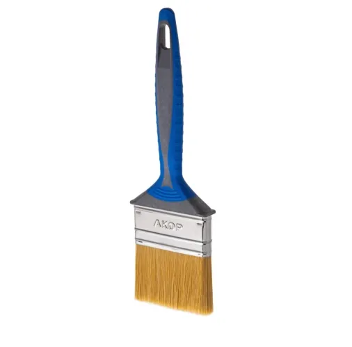 - Кисть малярная Акор Профи Лаки плоская двухкомпонентная ручка нержавеющая сталь искусственное волокно 70х10 мм