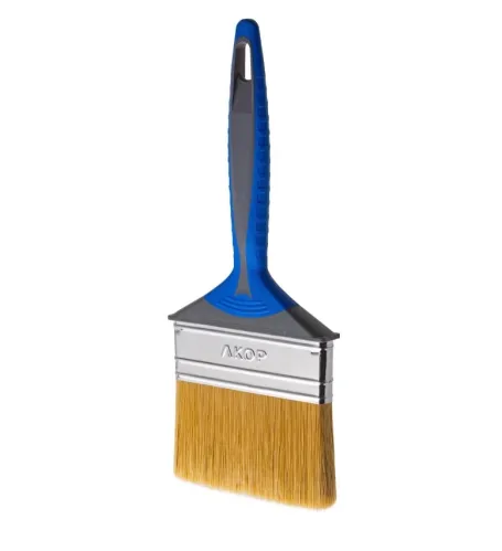 - Кисть малярная Акор Профи Лаки плоская двухкомпонентная ручка нержавеющая сталь искусственное волокно 100х10 мм