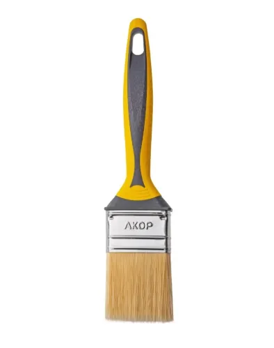 - Кисть малярная Акор Профи Эмали плоская двухкомпонентная ручка нержавеющая сталь искусственное волокно 50х10 мм