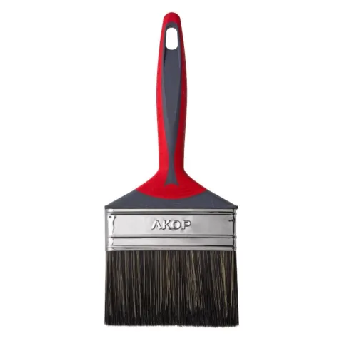 - Кисть малярная Акор Профи Водные краски плоская двухкомпонентная ручка нержавеющая сталь искусственная щетина 100х12 мм