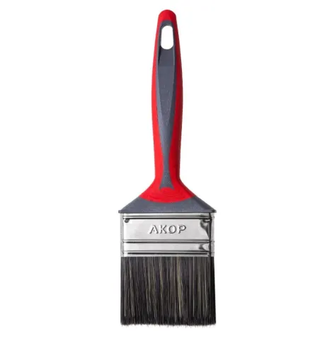 - Кисть малярная Акор Профи Водные краски плоская двухкомпонентная ручка нержавеющая сталь искусственная щетина 70х12 мм