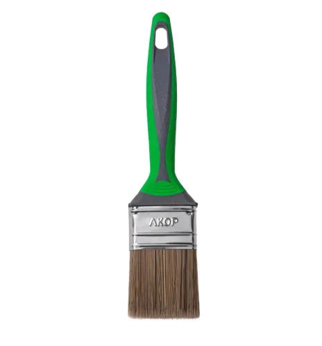 - Кисть малярная Акор Профи Для работ по дереву плоская двухкомпонентная ручка нержавеющая сталь искусственная щетина 50х12 мм